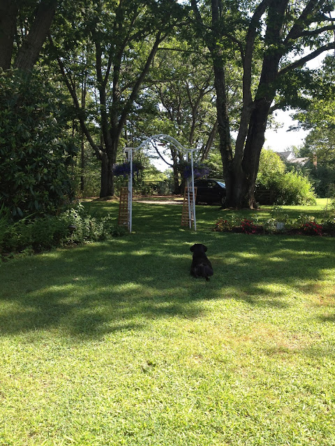With a nap coming up, and a long drive back to VT ahead, we sadly forfeited the homecoming celebration and piled into the truck, leaving c.Ginny and the pooches (Chipper pictured below) as the welcoming committee.